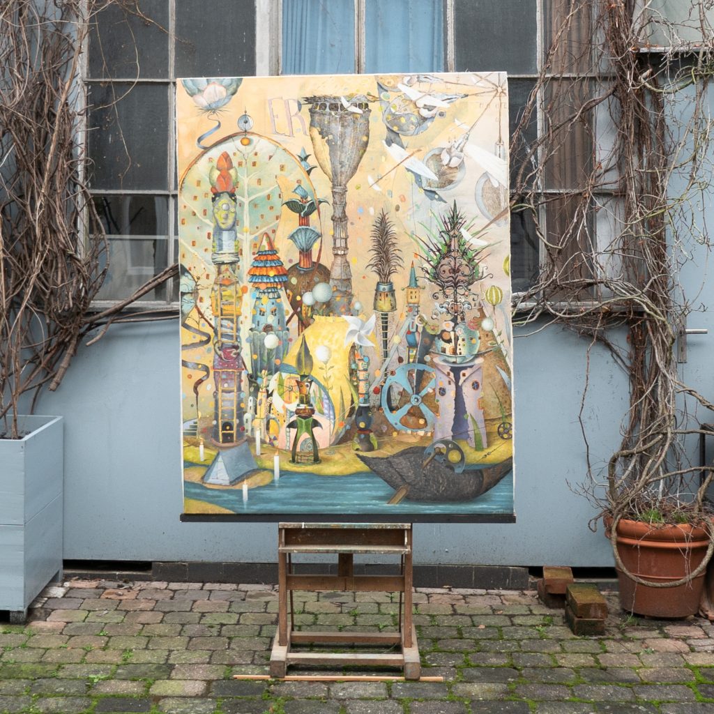 In meiner Kunst beschäftige ich mich immer wieder mit der Diskrepanz zwischen Traum, Phantasie und Wirklichkeit. So fließen bei meiner Arbeitsweise häufig Elemente aus der Realität in meine Phantasie ein. Durch die Auseinandersetzung mit diesen beiden Welten werden konkrete, illusionistische Motive zusammengeführt, wodurch eine Bildsprache entsteht, bei der sich Beziehungen und Geschichten erst im Kopf des Betrachters zusammenfügen. Der Umgang mit diesem Bildmaterial in Form von anachronistischen Montagen, Zuspitzungen, Symbolfindungen und Verfremdungen, stellt sich auch nicht selten als tragikkomisch erzählt dar. Manchmal wird dabei, durch ironische Brechungen, auch ein angemessener Abstand zu historischen Vorlagen deutlich. Durch das ungehinderte Aufeinandertreffen von bruchstückhaften Elementen auf der Bildfläche entsteht so eine unendlich vieldeutige Erzählung, wobei die Deutung davon abhängig ist, welche Wertigkeit der Betrachter jedem Bild oder Fragment beimißt und wie er die betreffenden Bilder miteinander verknüpft. So gehorchen meine Arbeiten ihren eigenen Gestzmäßigkeiten, wobei der Betrachter für sich eine eigene narrative Abfolge konstruieren und damit seinen individuellen Zugang zu meiner Kunst finden kann.